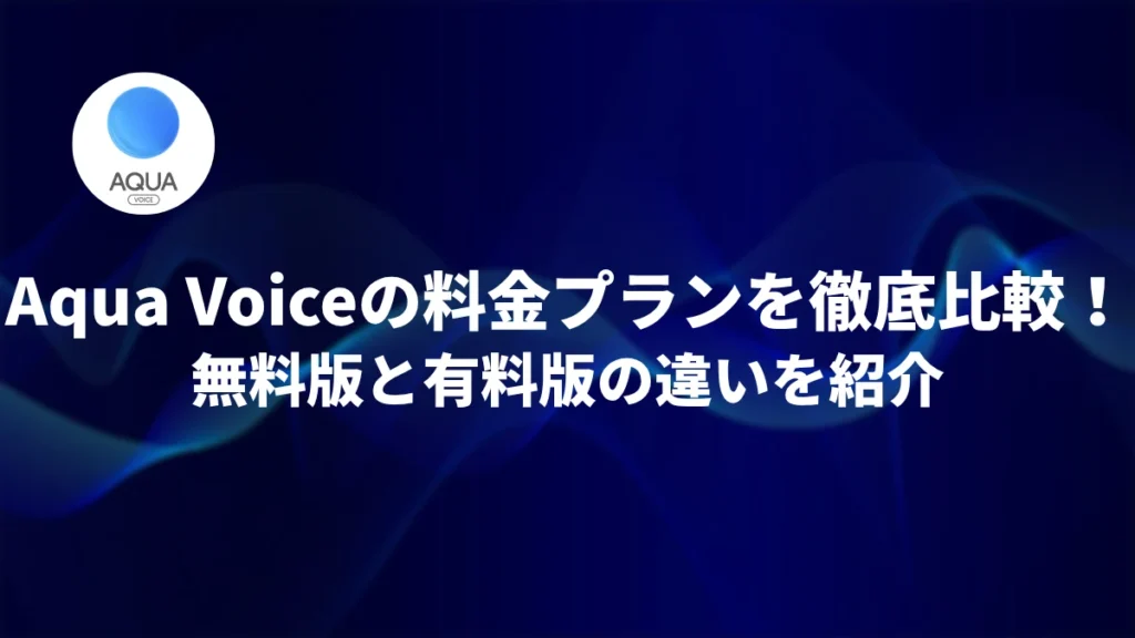 Aqua Voiceが気になるけど、料金がいくらかわからなくて踏み出せない...そんな方もおられるのではないでしょうか。 この記事では、Aqua Voiceの料金プラン(無料・Pro・Team)の違いから、他ツールとの価格比較、課金すべきかどうかの判断基準までをまとめ... -