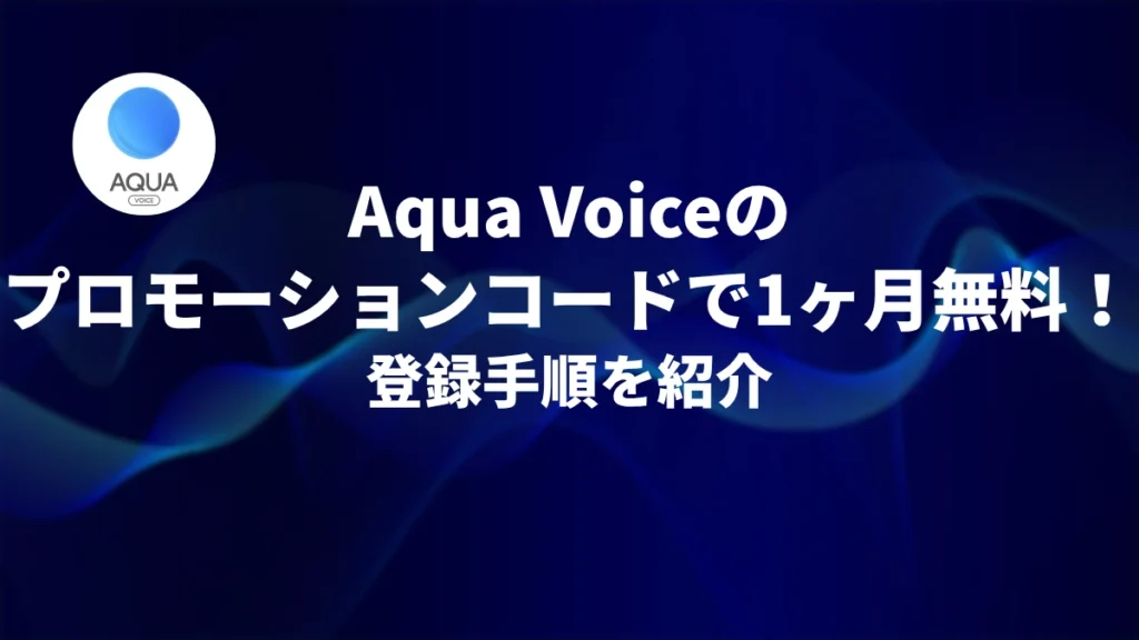 Aqua Voiceを始めるなら、少しでもお得に契約したいですよね。 実は、プロモーションコード(紹介リンク)を使えばPro版が1ヶ月無料で試せます。 この記事では、Aqua Voiceのプロモーションコードの入手方法から登録手順、利用時の注意点までをまとめて解... -