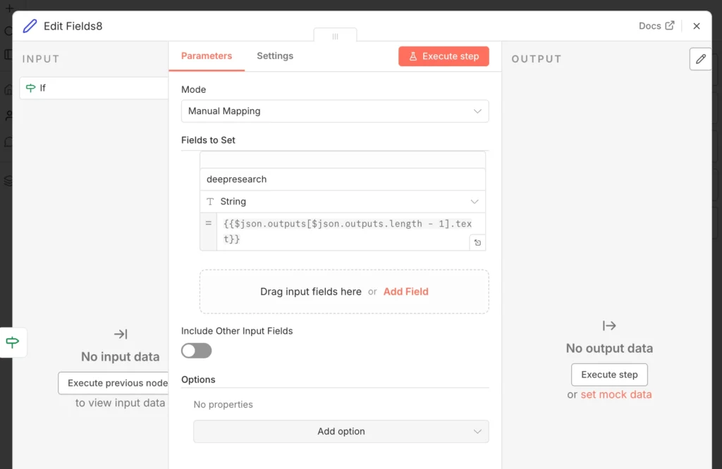 n8nでdeep researchを使うワークフローの具体的なノード構成