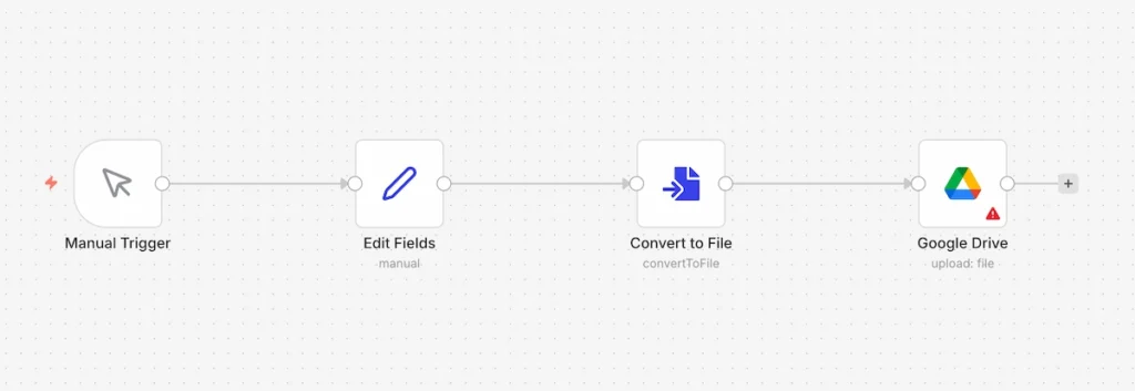 また、「Google Drive」ノードに繋げばGoogleドライブにアップロードしたり、「Slack」ノードに繋いでチームのメンバーにファイルを共有したりすることも簡単です。