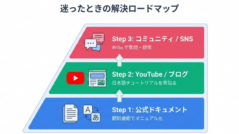 同じようにn8nを使っている仲間が見つかると、情報交換もできますし、何よりモチベーションの維持につながります。
